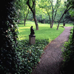 The Valley House Sculpture Garden, originally designed by renowned landscape architect Clarence Roy in 1959, is sited on 4.5 wooded acres in far North Dallas. The Garden won a major design award in 1960 for the best garden design for the size category. For a number of years the gallery hosted spring exhibitions of many notable sculptors including, Charles Umlauf, Sorrel Etrog, David Cargill, and a one-person show of Henry Moore in 1969. When Erika Farkac, the chief designer at Lambert Landscaping Co. from 1962 to 1980, retired to private practice and married gallery director Donald Vogel, she immediately began to further enhance the gardens. Every spring has brought new features, new flowerbed designs, and the continual fine-tuning of an ongoing work in progress. Erika has created a garden rich in colors, textures, and surprises.